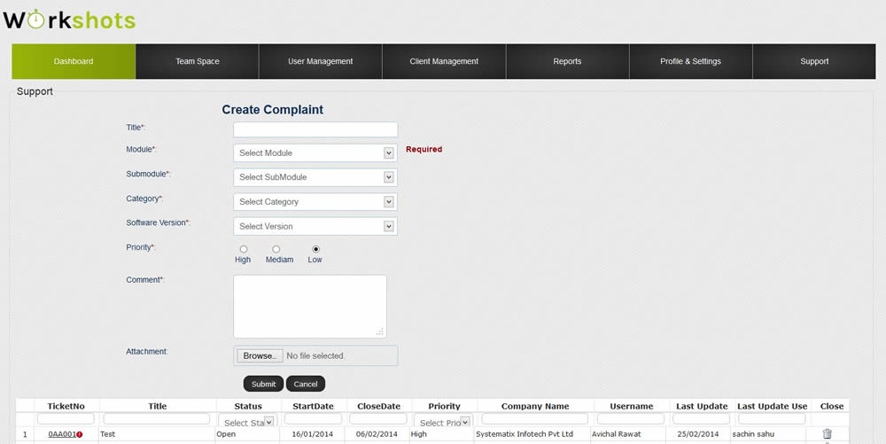 Your company's Administration and IT department need the right resources to perform their jobs quickly and efficiently. Workshots Admin and Support Management enables them to organize their work better and perform their tasks proficiently through a ticketing system. The requester gets can raise request in the system and support team marks this as resolved once done. This is along with the ticket prioritization as well to help the requester raise the issue as critical, urgent or normal.